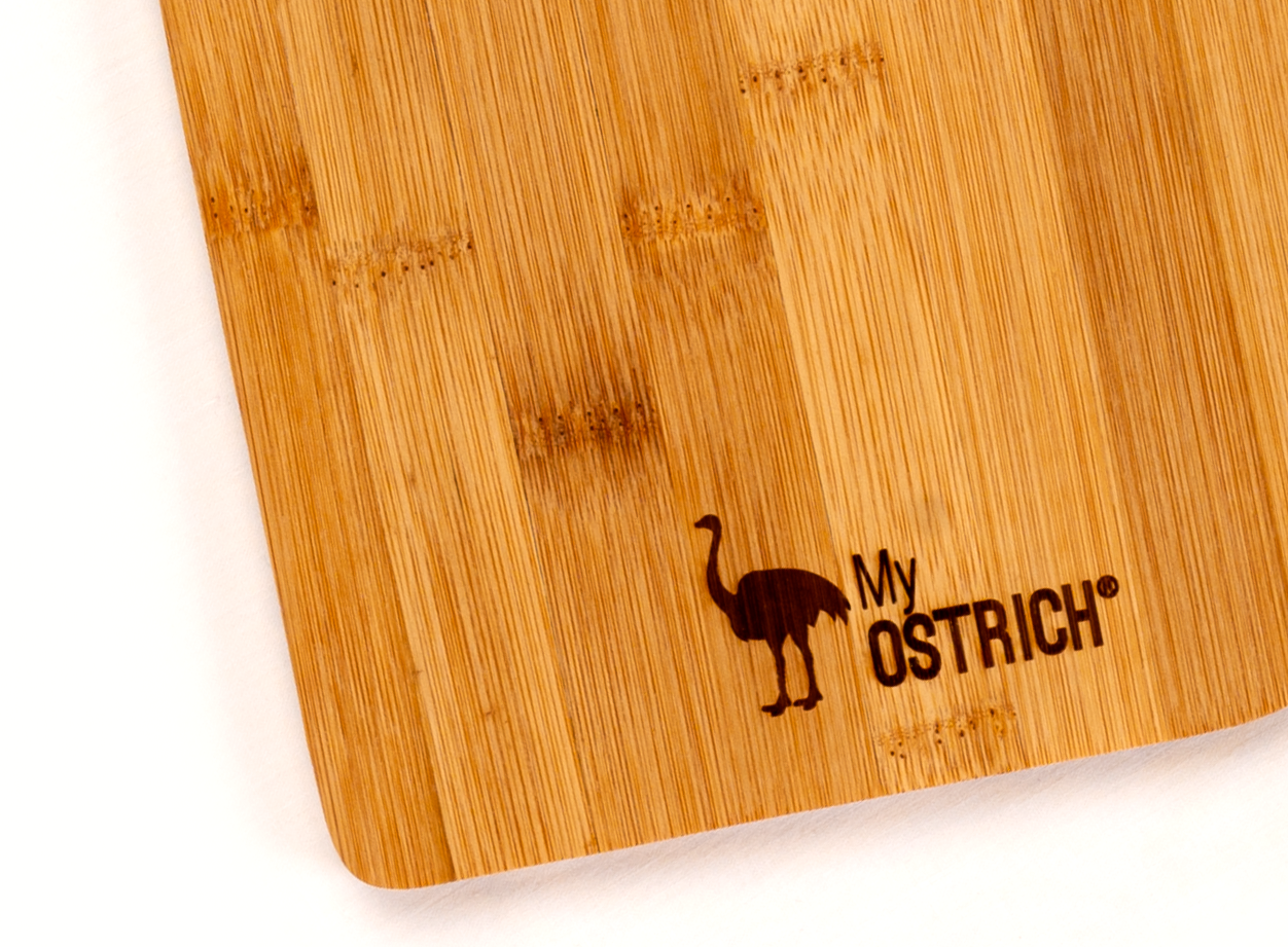 Tabla de cortar de forma rectangular con bordes redondeados en dos lados ,hecha en madera de bambú.